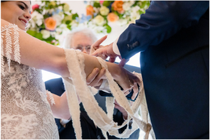 The couple wanted a bright and energetic spring garden wedding and fortunately had a thoughtful rain plan given the potential for April showers. They wanted a soft, whimsical look with lush garden flowers. To give this early spring wedding vibrancy and energy we used contrasting colors such as deeply saturated peaches, pops of blue, pink and vibrant greens. We used many early spring flowers from our gardens such as viburnum, delphinium, coral peonies and included various roses and mini carnations for color.